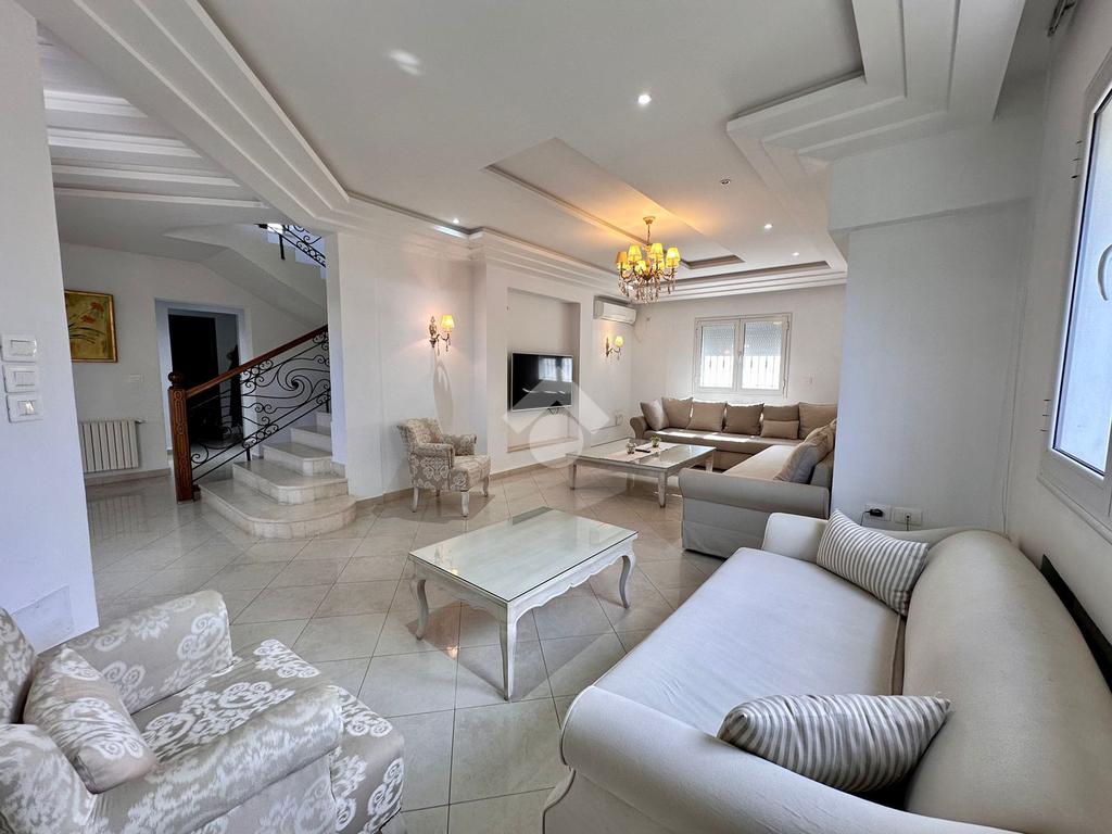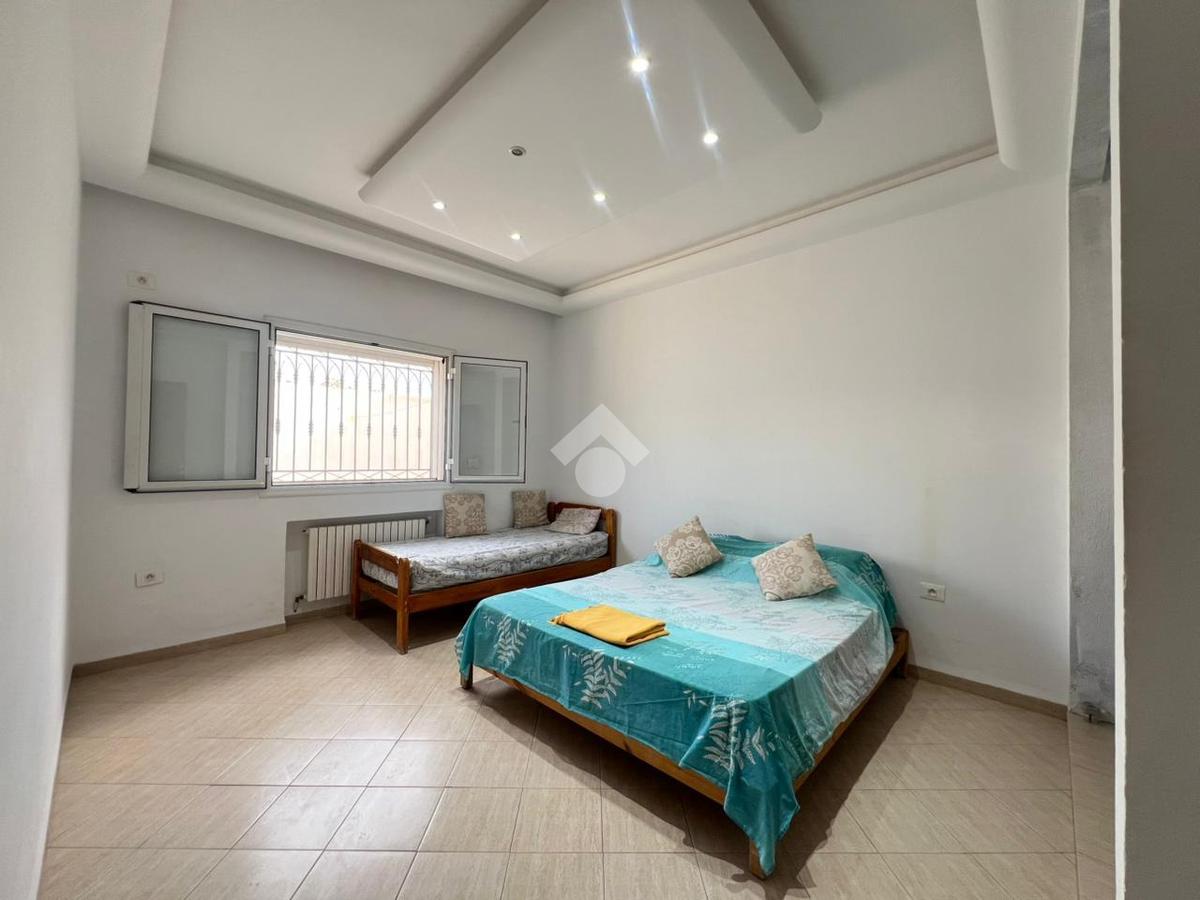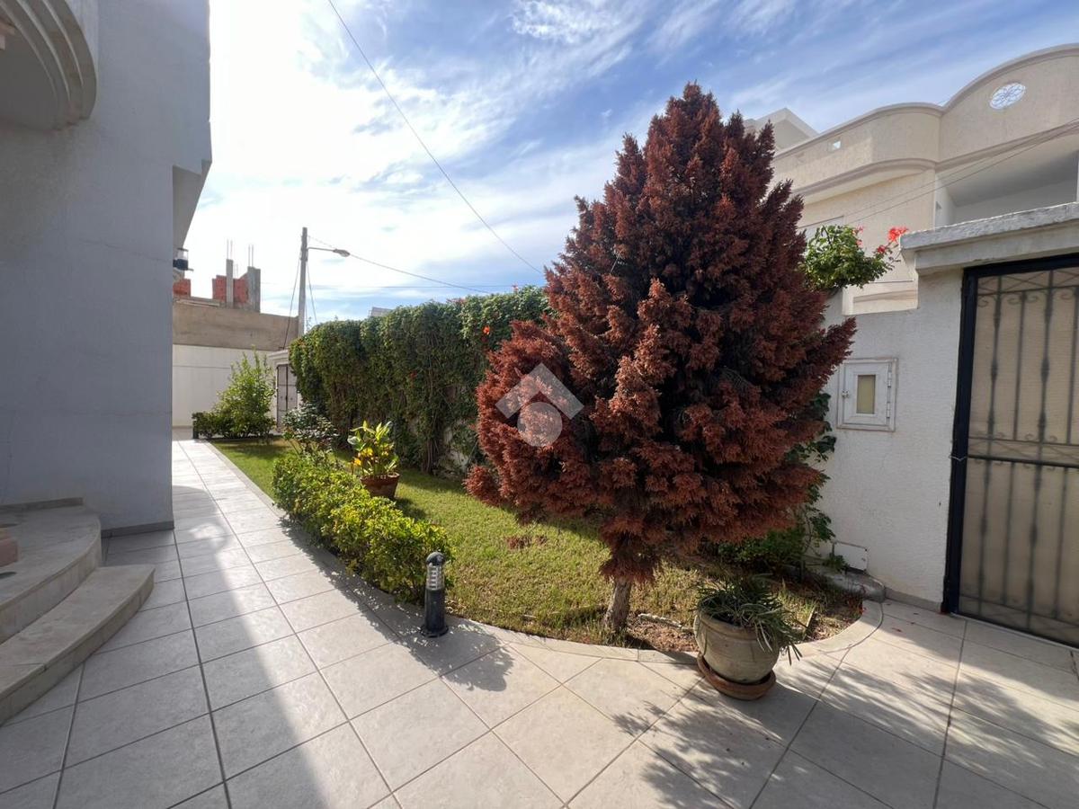 Cette belle villa se situe dans un quartier résidentiel calme et paisible, se déploie sur un terrain de 416 m². Totalement isolée, elle est conçue pour offrir une luminosité naturelle exceptionnelle grâce à ses ouvertures sur les quatre faces de la maison. Le jardin qui l’entoure est soigneusement aménagé avec des coins verdoyants, créant ainsi une atmosphère apaisante et privée. On y trouve également une cuisine d’été idéale pour les repas en extérieur, ainsi qu’un garage fermé pour un stationnement sécurisé. Une allée permet de garer jusqu’à deux voitures, offrant un accès facile et discret à la maison.